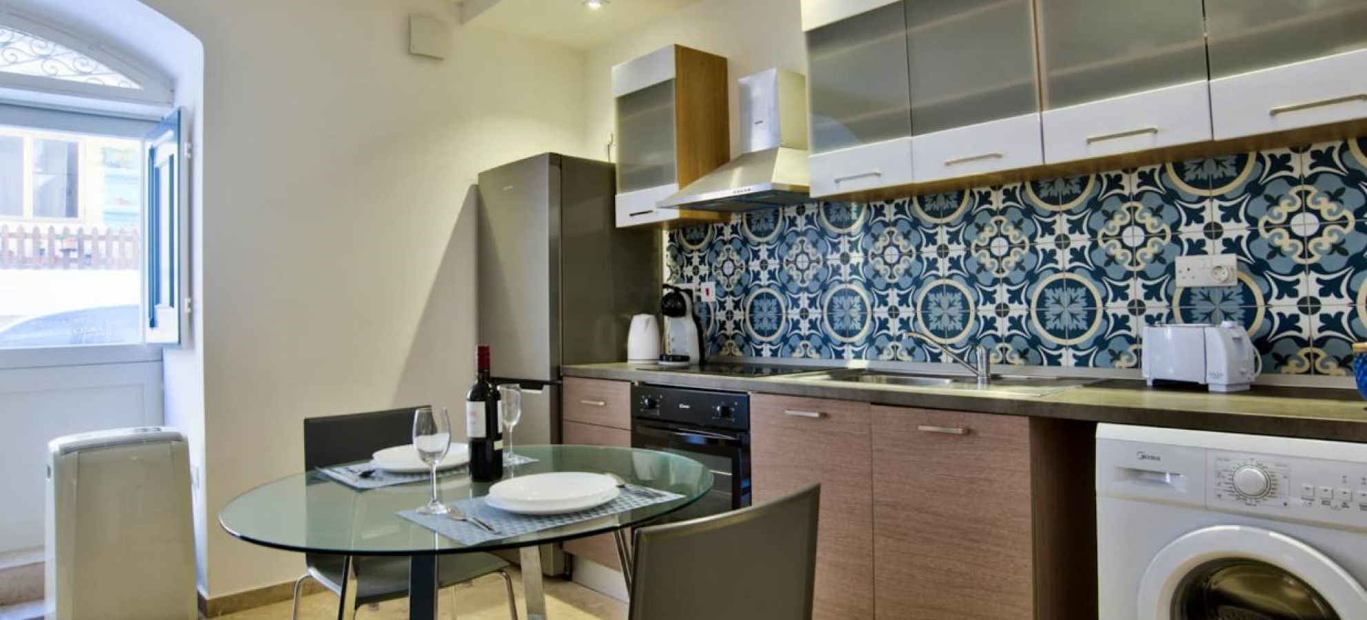 All suites are beautiful, classy marble floors. The entrance leads to a very modern, contemporary holiday accommodation, which also incorporates elements of the traditional Maltese style, with a typical open plan kitchen/living/dining area. The kitchen is fully equipped with coffee machine, which makes it ideal for cooking tasty home-cooked meals. The living area comprises of a flat screen TV with cable channels and a comfortable 2-seater sofa.