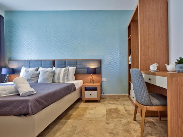 Experience cozy comfort in our Mini Studio located on the ground floor of Tritoni Ursula Suites in the heart of Valletta. Perfect for solo travelers or couples, this compact yet charming accommodation offers all the essentials for a memorable stay in Malta's capital. Featuring a comfortable bed, a modern ensuite bathroom, and a convenient kitchenette, our Mini Studio provides everything you need for a comfortable stay. With its ground-floor location, you'll have easy access to explore the historic streets of Valletta and all its attractions. Enjoy a cozy retreat in the heart of the city at Tritoni Ursula Suites.