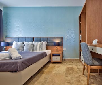 Welcome to Tritoni Ursula Suites in Valletta, where luxury and convenience converge in our spacious One Bedroom Suite. Nestled in one of the most iconic streets of Valletta, this suite offers an authentic Maltese experience. With a balcony overlooking the charming surroundings, the suite features a comfortable double bed and a sofa bed, full kitchen and dining area , accommodating up to three guests. Whether you're admiring the historic architecture or exploring the bustling streets, you'll find yourself in the heart of the action. With its prime location and ample space, our One Bedroom Suite is the perfect choice for your stay in Valletta.